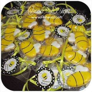بیسکوییت به شکل بال سبز و بنفش و با تزیین کامل و پلاستیک و روبان و لیبل نام کودک ارائه می شود.