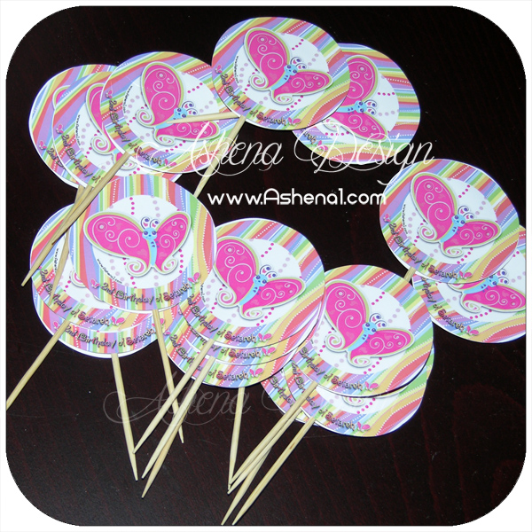 خلال کوتاه یا تاپر با طرح تم پروانه و رنگین کمان با برش گرد - مناسب برای تزیین روی غذا یا اردور و یا کاپ کیک در بسته های 6 عددی