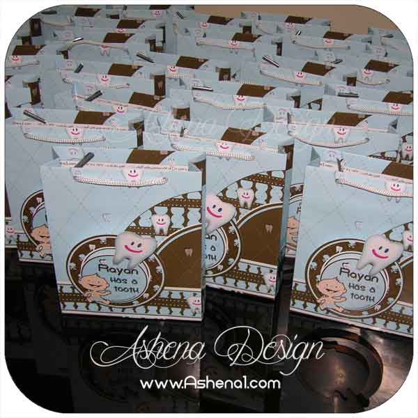 پاکت ساک دستی جشن دندونی قهوه ای و آبی