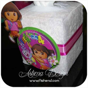 جعبه دستمال کاغذی با روکش مخمل و ربان و تزیینات مناسب تم تولد فضا و نام کودک