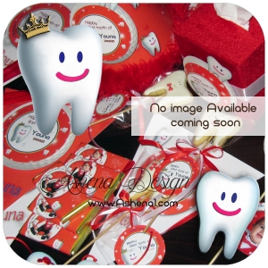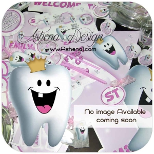 کارد و چنگال شفاف هر کدام 6 عدد با لیبل جشن دندونی سفید و صورتی و نام کودک