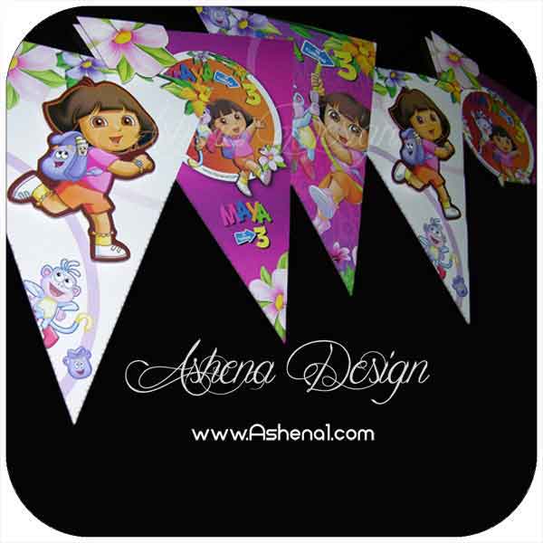 ریسه تولد شامل 5 "عدد تولد" به ارتفاع 25 سانتی متر با تزیینات برجسته تم دورا و نام کودک و ...