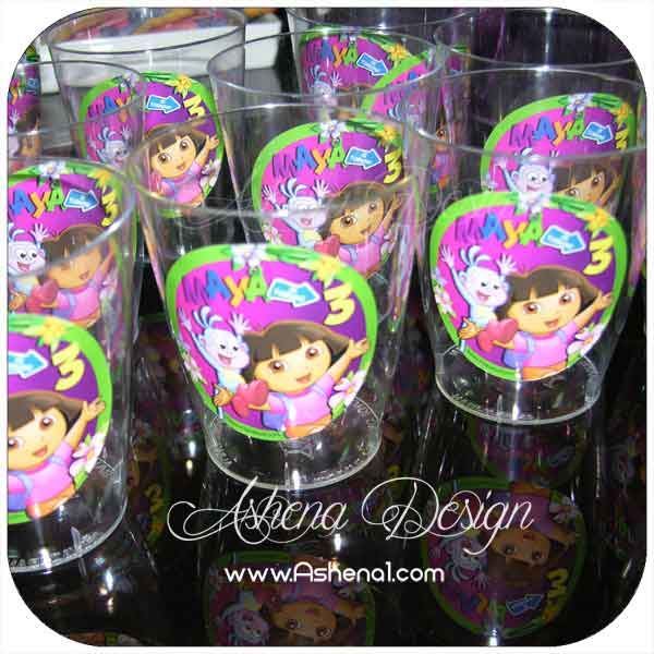 لیوان شفاف با تزیین و لیبل طرح تم درا در بسته های 6 عددی