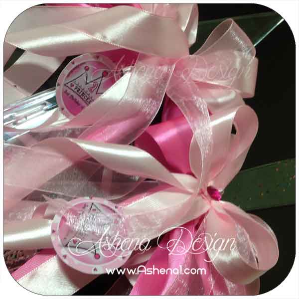 کارد و کفگیر کریستالی با تزیین بسیار زیبا ،نام کودک و طرح تم تاج صورتی