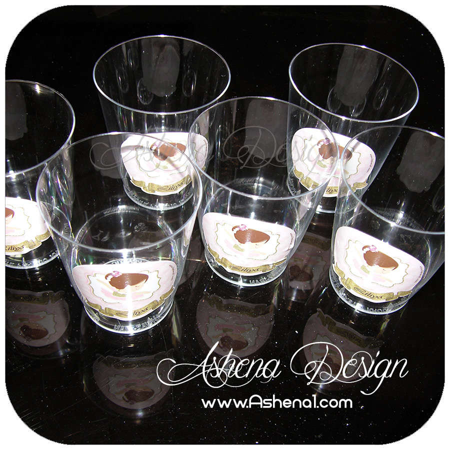 لیوان شفاف با تزیین و لیبل طرح تم بالرین صورتی طلایی در بسته های 6 عددی