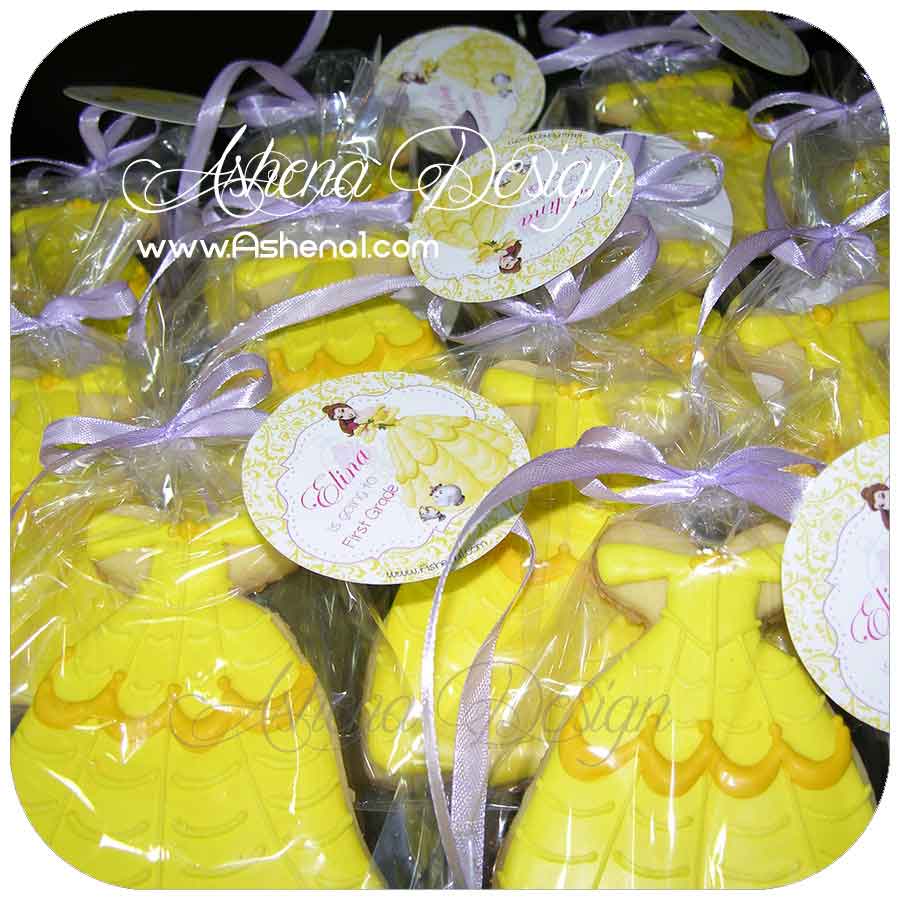 تک تک بیسکویتها داخل کیسه و دارای ربان و تگ به شکل تم دیو و دلبر و نام کودک می باشد