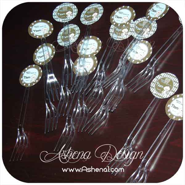 گل سینه ( پیکسل ) با طرح تم جشن دندونی قهوه ای و صورتی و اسم کودک شما و یا عکس کودک