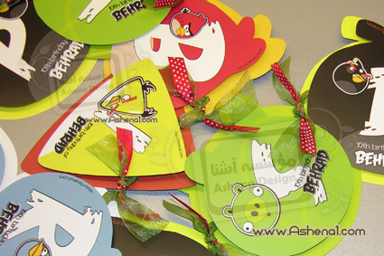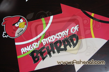 فلش راهنمای ورودی به محل جشن با طرح انگری برد با آویز تم که با نام کودک طراحی و چاپ می شود .