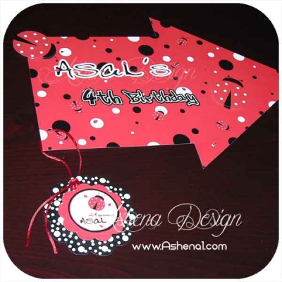 این پاکتها قرمز با طرح زمینه کفشدوزک و نام کودک بوده و یک برچسب با نام کودک و متن تشکرو طرح کفشدوزک برجسته بر روی آن قرار دارد