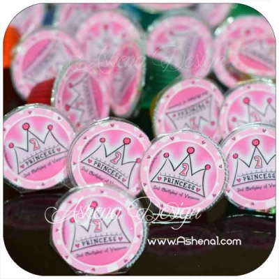 ژله کوچک با لیبل تم یک سالگی تاج صورتی