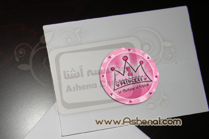 پاکت کارت دعوت یا تشکر با طرح تم یک سالگی تاج صورتی ، زیبا
