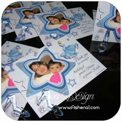 کارت دعوت سیندرلا با ستاره برجسته که با نام و عکس کودک طراحی و اجرا میشود