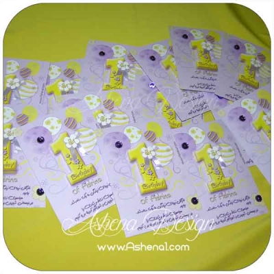 کارت دعوت یا تشکر با طرح تم یک سالگی یاسی لیمویی بسیار زیبا و شیک