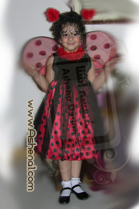 لباس دخترانه کفشدوزک با جنس ساتن ( تابستانه ) یا مخمل ابردوزی شده ( زمستانه ) , تمام آستر - .بال در رنگهای سفید - قرمز با درخالهای مشکی و مشکی با خالهای قرمزو بال توری قرمز در گزینه نوع بال قابل ارائه است .