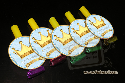 سوت سوتک با لیبل مناسب تم یک سالگی تاج طلایی و نام کودک مخصوص هدیه دادن به میهمانها