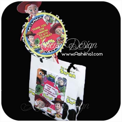 پاکت یا ساک دستی به شکل تم تولد داستان اسباب بازیها(toy story) بسیار زیبا و شیک به ابعادعرض 15ارتفاع 18 و عمق 4.5 سانت
