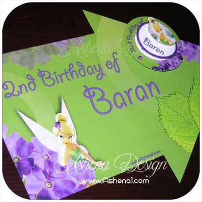 فلش راهنمای ورودی به محل جشن با طرح تینکربل با آویز تم که با نام کودک طراحی خاص شده و ارائه می گردد .