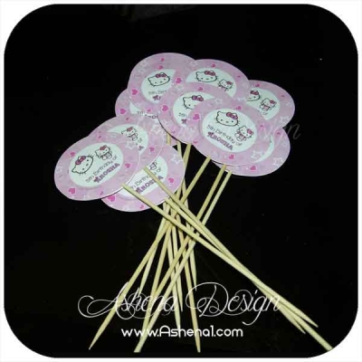 خلال کوتاه گرد با طرح هلو کیتی مناسب برای تزیین روی غذا یا اردور و یا کاپ کیک